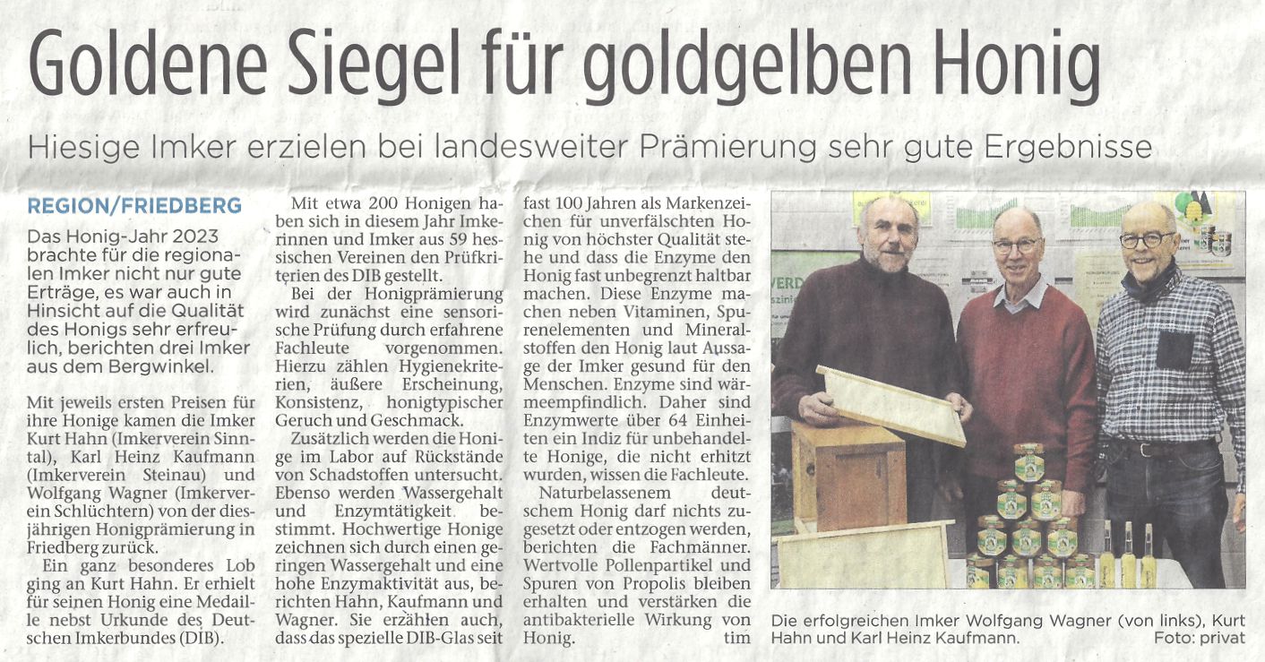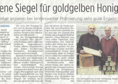 12.12.2023 - Zeitungsartikel "Goldene SIegel für Goldgelben Honig
