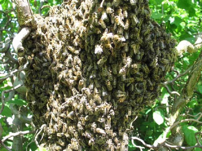 Bienenvölker vermehren sich durch „Schwärmen“. Im Mai und Juni kann es passieren, dass ca. die Hälfte der Bienen zusammen mit der Königin in einer Wolke von Bienen aus einem Bienenkasten auszieht und sich in der Nachbarschaft in Form einer so genannten „Schwarmtraube“ sammelt. Im restlichen Bienenvolk wächst eine neue Königin heran.