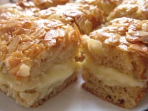 Bienenstich ist ein traditioneller Blechkuchen aus Hefeteig